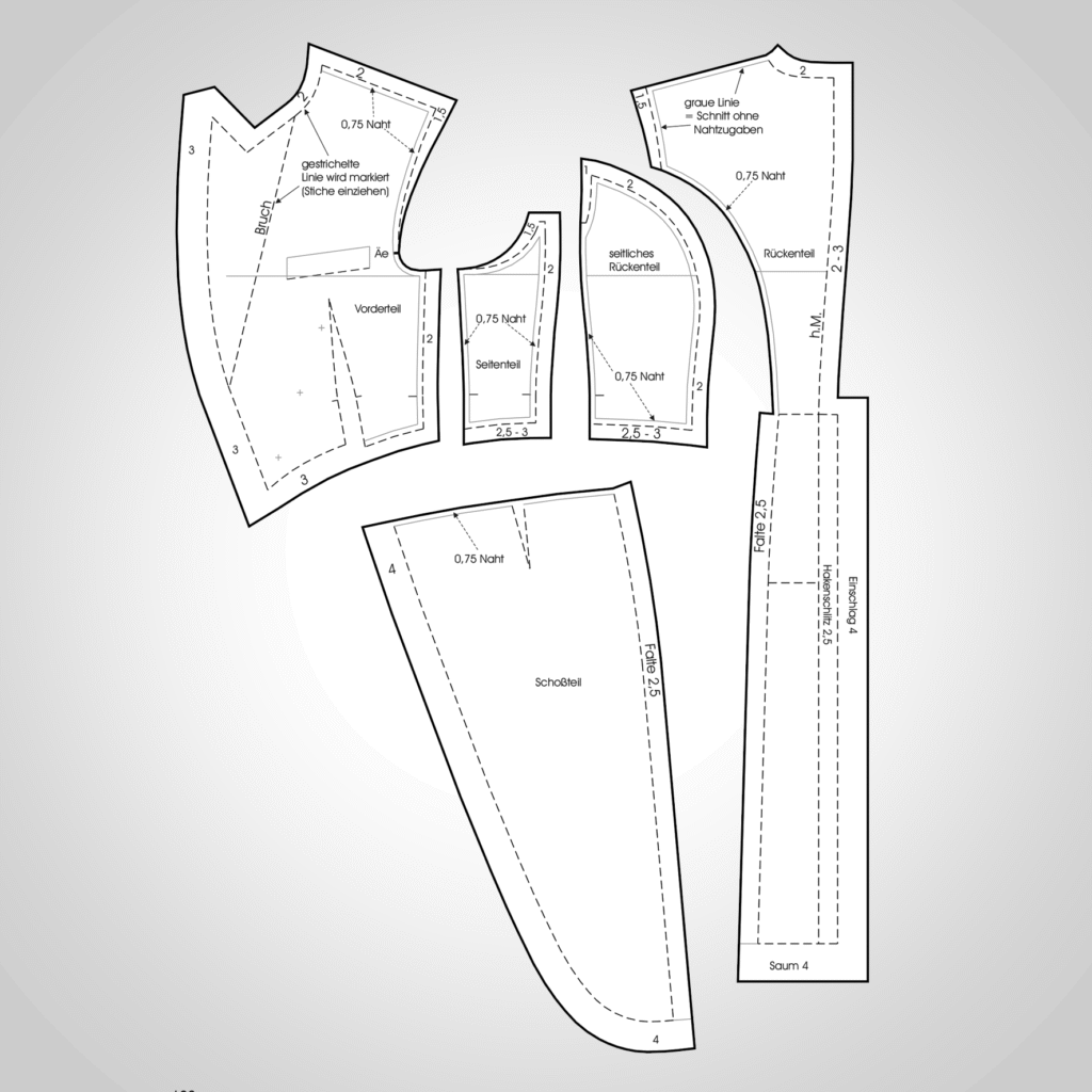 Kostenloses Schnittmuster für Damenfrack: Ein elegantes Design inspiriert von barocken Elementen. Perfekt für besondere Anlässe! Einfach herunterladen und in die historische Mode eintauchen.